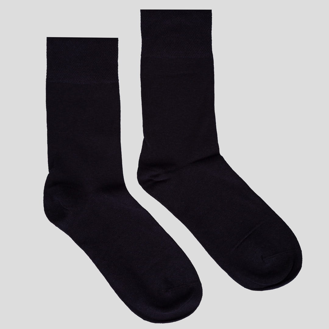 Klasyczny, gładki fason w granatowym kolorze pasuje do eleganckich i casualowych stylizacji. Skarpety dobrze dopasowują się do stopy, nie uciskają i zachowują swój kształt nawet po wielu praniach.